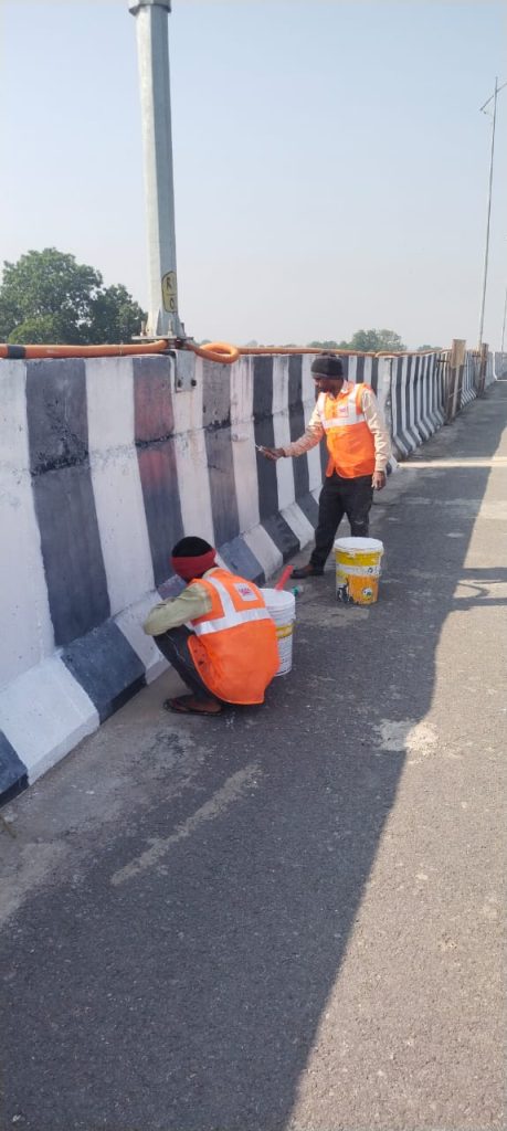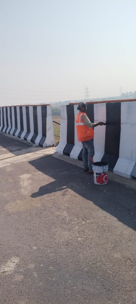 Kerb, Crash Barrier & Ramp Plaza Building Painting Work — Bundelkhand Expressway Project